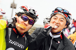 80km、90kmと進むにつれ、古傷の左ヒザが痛い。愛用のレーサーパンツとサドルだが、お尻の感覚もなくなってきた。これが100kmの壁か……。ここでもう一つの壁が出現。それは、眠気との闘い。あまりのつらさに脳ミソがシャットダウンしようとしているかのよう。「眠たい- - -!」「わ- - -!」「きゃ- - -!」と、叫んで眠気を覚まそうとする。まさか眠気に襲われるとは……。前夜はしっかり寝なきゃと痛感。両津BS(弁当ステーション)に到着したのは11時40分。予定より40分遅れ。が、もう腕の感覚までもがマヒしている。ボトルケージからボトルが引っこ抜けないのだ。はじき野ASでの元気は30kmの間に跡形もなくなった。声を出す元気もない。ストレッチをしながら、たくあんを口に入れ、ミソ汁をすするのが精一杯。210kmコースの両津BS出発制限時間は12時。しんどい。心はとっくに折れている。でも、悔しい。行けるかぎりは進まなきゃ。いや、進みたい。