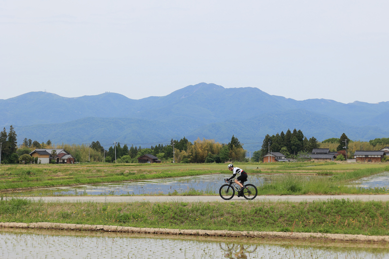 大会翌日(5月19日)に開催されるこのサイクルツアーは近年人気のグラベルライド。ツアータイトルにもあるグラベルライドとは、舗装路から砂利道などのオフロード(未舗装路)まであらゆるフィールドを自由に走って楽しむという意味だ。 「トキの里山グラベルライド」で設定されたコースの半分は砂利道や荒れた舗装路となっており、自然探訪や新緑の林道ライドが楽しめる。このコースも参加者の安全のためサポートライダーが先導&誘導する。